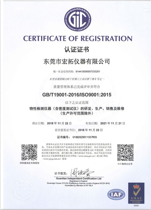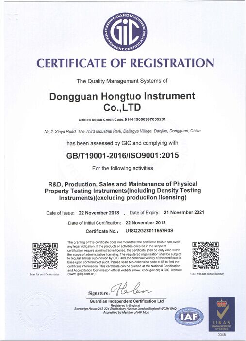 宏拓儀器通過ISO9001:2015質(zhì)量體系管理認(rèn)證,通過國(guó)家計(jì)量測(cè)試中心全面質(zhì)量與性能檢測(cè),獲得國(guó)家計(jì)量器具型式批準(zhǔn)CPA證書,參與起草制定: 【GB/T 1040.1-2025塑料 拉伸性能的測(cè)定】、【GB/T 1634.1-2025塑料 負(fù)荷變形溫度的測(cè)定】、【GB/T 44559.1-2024塑料 硬質(zhì)塑料沖孔性能的測(cè)定】 、【GBT 43139-2023鑄造鋁合金液減壓凝固試樣密度檢測(cè)】......等標(biāo)準(zhǔn)。